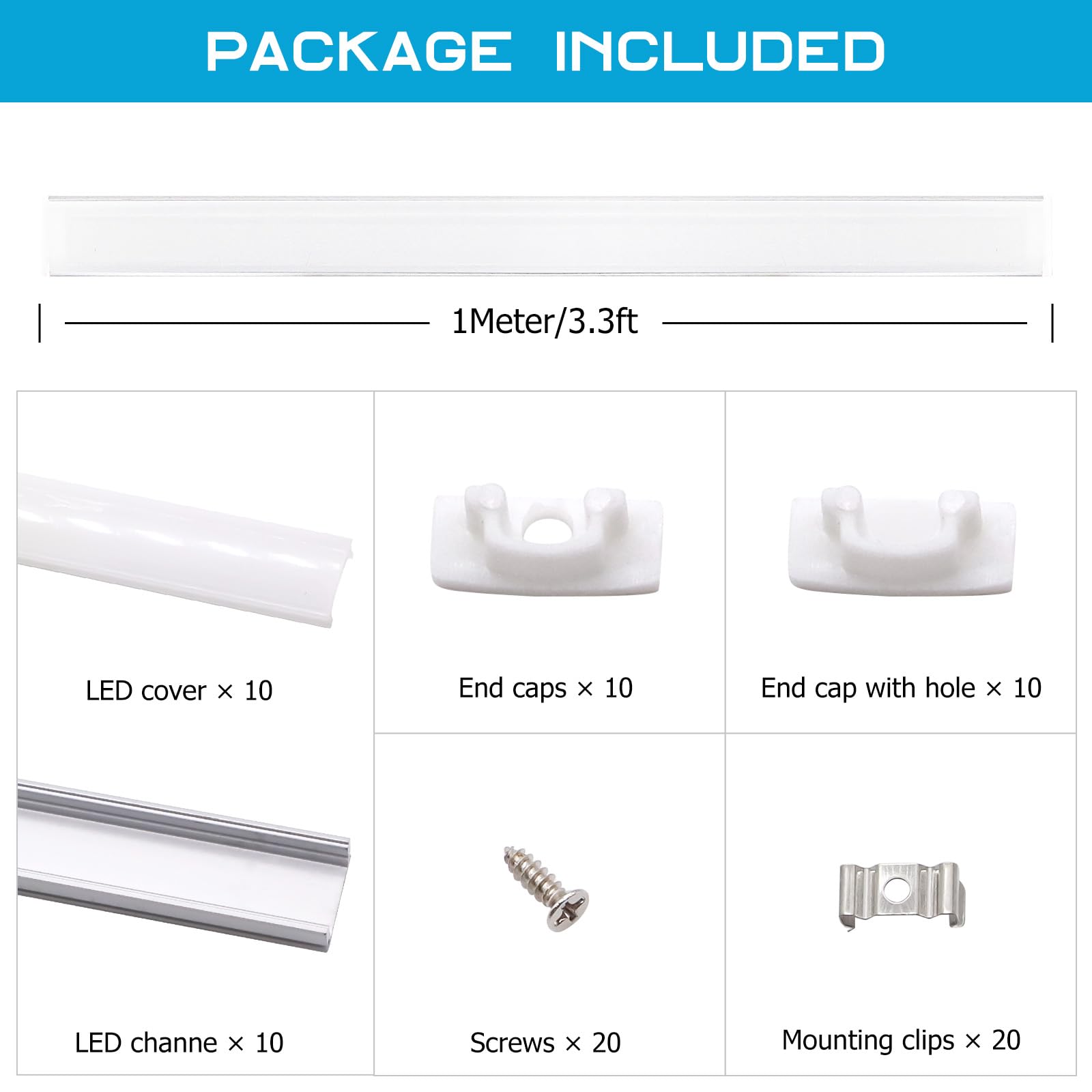 Any questions related to 10 Pack 1Meter/3.3ft U Shape Aluminum LED Channels with Milky PC Cover Diffusers, LED Channel Systems for Flexible/Rigid 3528, 5050, 5630 LED Strip Lights Mounting (U Shape)?