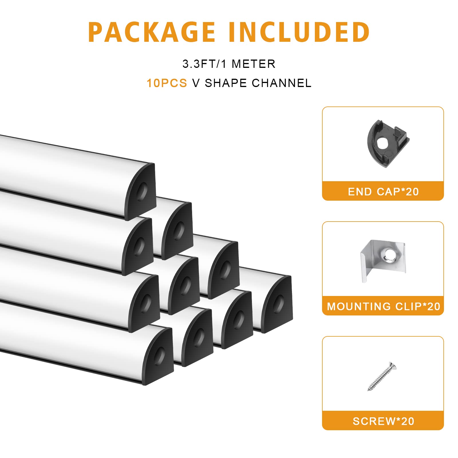 Any questions related to 10 Pack LED Channel with Milky White PC Cover, 3.3FT/1M Aluminum Channel for Strip Lights V Shape, Diffuser Profile Track System Black?
