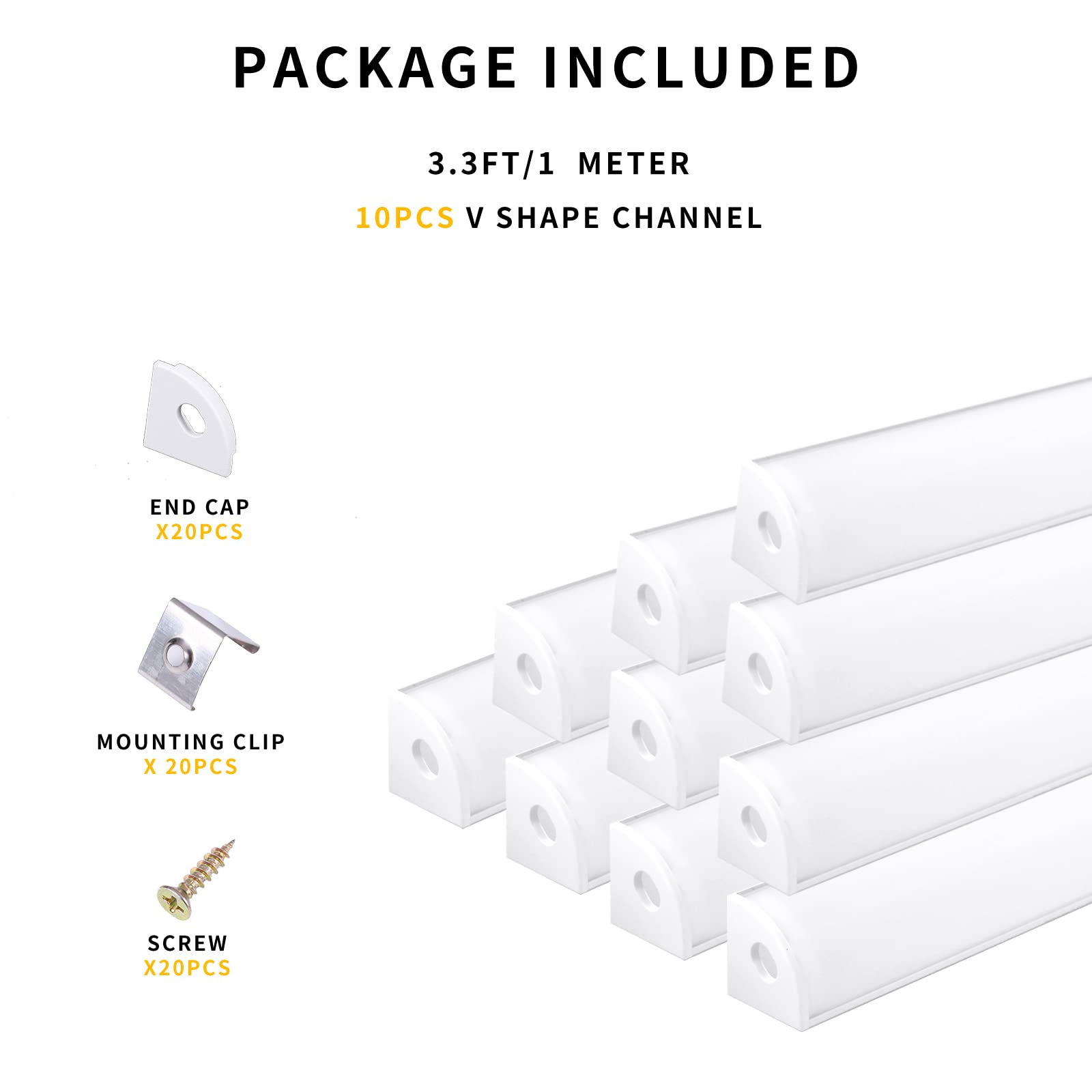 Any questions related to 10Pack LED V Shape Diffuser 3.3FT/1M Aluminum Channel System with Milky White PC Cover, Aluminum Profile Track for LED Strip Lights Mounting 5050 3528?