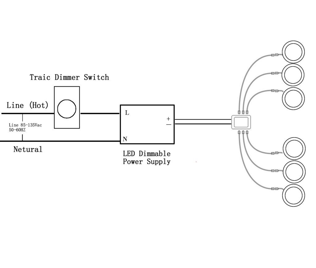 • Input 90-130Vac, working with common triac LED wall dimmer. Output DC12V, safe for touching.