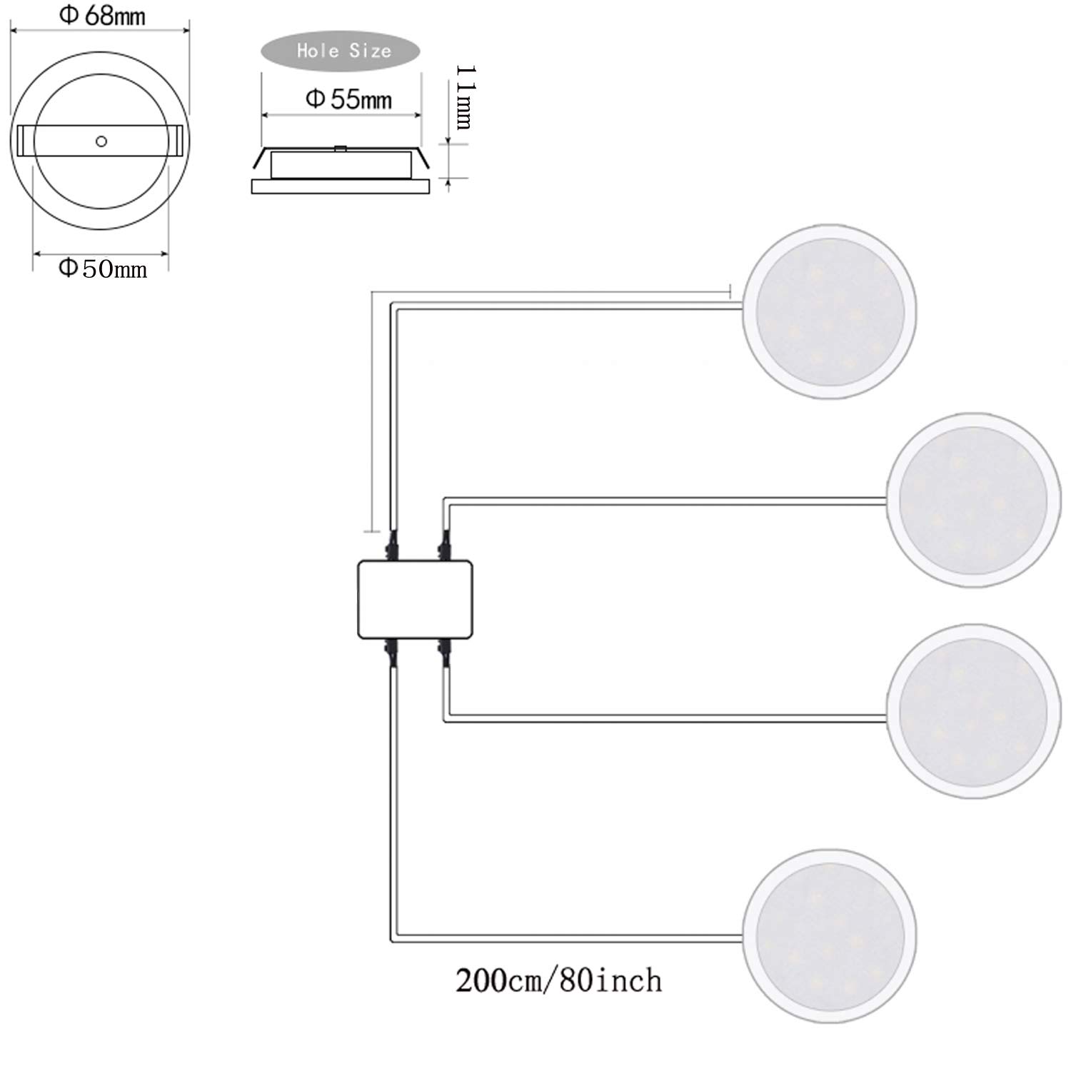 Modern Design: Handy, cute, slim, clean, very compact body! These RV puck lights only need a small hole on RV ceiling while give an extending space with suspended brightness.