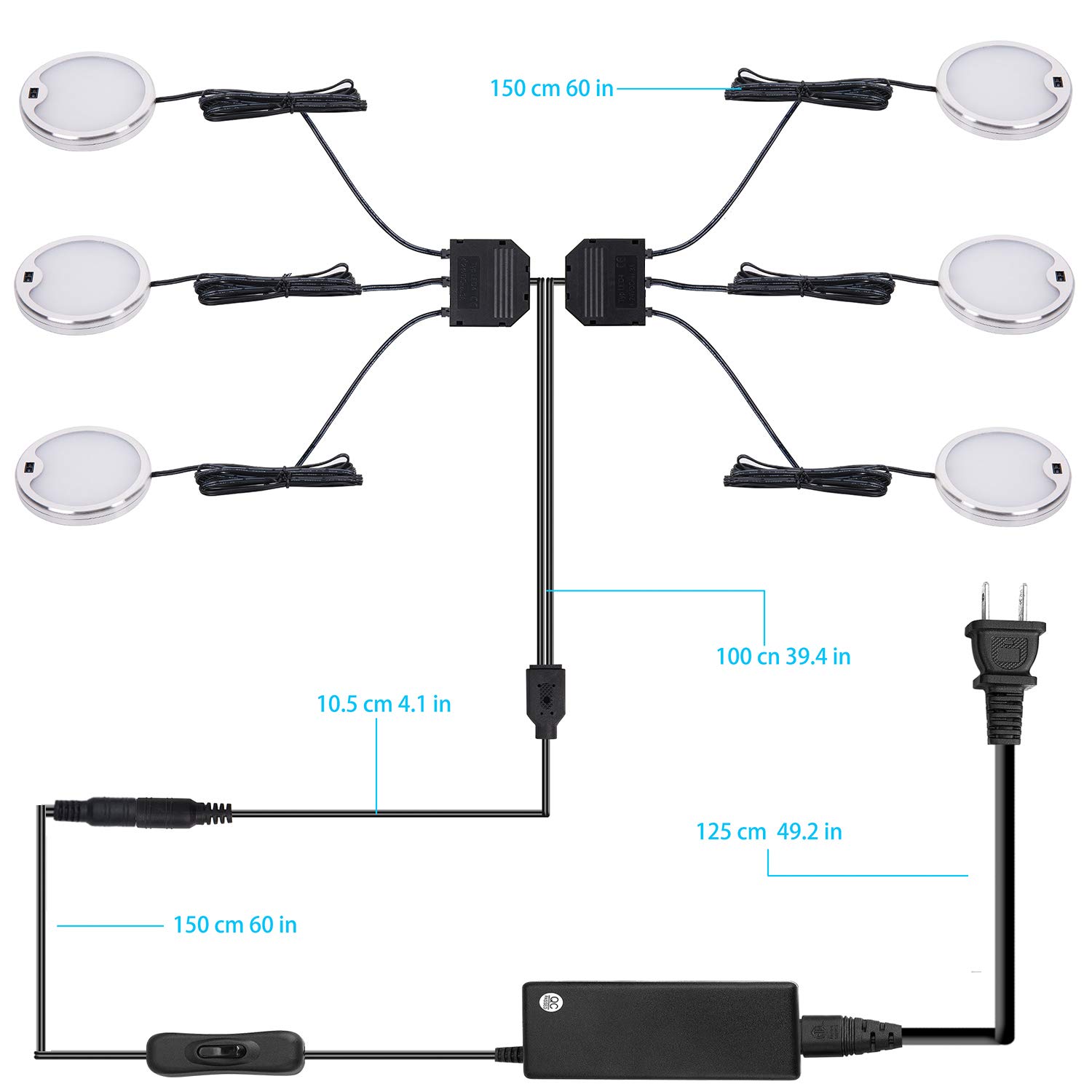 Larger size and better material: With larger size around 3.15 d X 0.39 Inch thick match your cabinets well, even for the bigger counters. Our New under cabinet led lighting kit adopt premium material, UL listed power plug and new technology hand wave control to providing safer and better product for you.