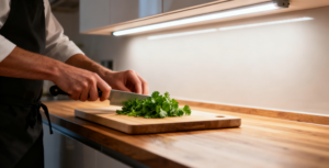 Kitchens: Under-cabinet lighting to illuminate workspaces.